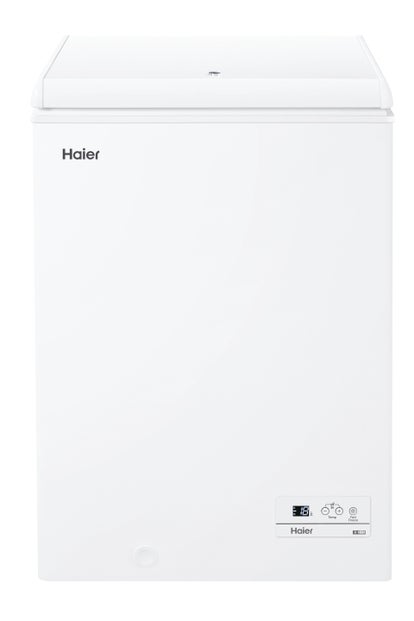 Haier HCE100E/. Capacità netta congelatore: 97 L, Classe climatica: SN-T, Capacità di congelamento: 6 kg/24h, Autonomia senza energia elettrica: 13 h, Emissione acustica: 39 dB, Punteggio: 4*. Classe efficienza energetica: E, Consumo energetico annuo: 168 kWh. Colore del prodotto: Bianco